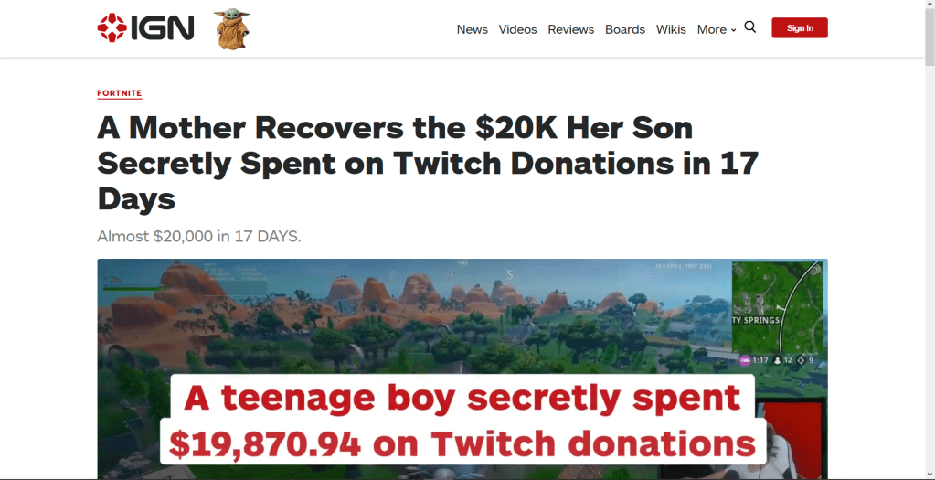 Over the weekend I had the opportunity to view an article on IGN.com about a teenage boy who wiped out years of his mother’s savings by giving donations to Twitch game streamers whose videos he enjoyed. According to the story, the amount the teen gave over a 17-day span totaled nearly $20,000. When reading this article, I came to understand why so many parents and adults are against their children and youth in general being video gamers. Take some time and Google “video game addiction” and there will be an endless supply of search results.