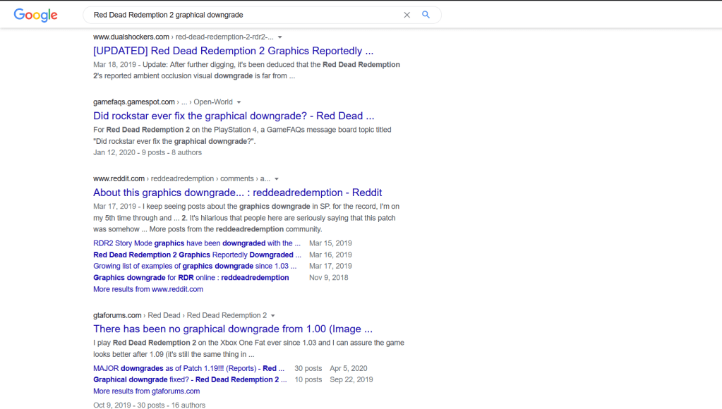 Updates today seem to be a mixed bag when it comes to gamers. I can’t tell you how many times I read the phrase, “The update broke the game.” The most recent updates that Rockstar Games made to Grand Theft Auto V and Red Dead Redemption 2 have been met with a plethora of complains and dissatisfaction by the owners of these two games. Doing a YouTube search on “Red Dead Redemption 2 graphical downgrade” will bring up many search results where the videos focus on how the graphical quality of the game seemed to consistently deteriorate with each passing update. With online multiplayer games, I’ve read so many times about how some gamers literally stopped playing certain games because the updates ruined and took away the very components that made them initially buy and enjoy the games in the first place. Remember, aren’t all of these updates supposed to fix and make the games better? With the amount of space on your hard drive that is being sacrificed for them, they definitely should.
