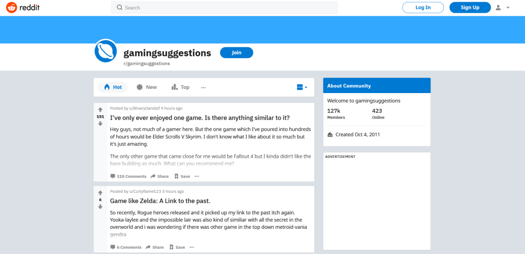 I have personally scrolled through this subreddit when I wish to find a game within a specific genre that I’m looking to purchase. Reading the responses to a request that is similar to what I’m looking for allows me to consider several options that I can then further research before deciding if I want to acquire one of them. It’s a cool resource, especially if you find the huge library of video games available to be overwhelming and you want to narrow your search.