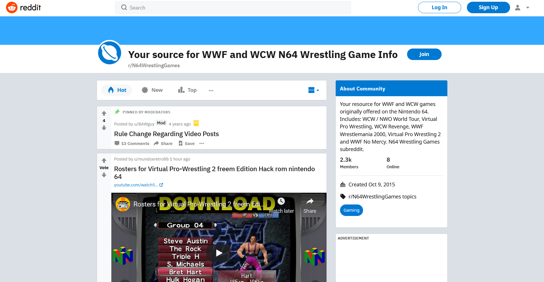 If you are a fan of the Nintendo 64 wrestling games, then the subreddit N64WrestlingGames is a page that needs to be bookmarked within your web browser. This community covers WCW/nWo World Tour, WCW/nWo Revenge, WWF Wrestlemania 2000, Virtual Pro Wrestling 64, Virtual Pro Wrestling 2, and WWF No Mercy in particular. All of these games set the bar very high for 3D wrestling titles that for many gamers still stands the test of time to this day. You’ll find community members sharing videos, information about mods, and all sorts of other relevant content for your consumption. This is a tremendous resource for old-school wrestling game fans.