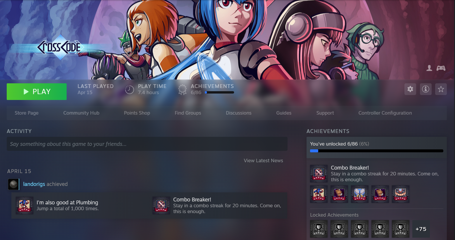 So at one point, I’m just in the zone taking on enemy after enemy. Everything was just feeling in a rhythm. I was having an absolute blast. Finally, I decided to stop fighting and go back into town and upgrade my weapons and armor. From there I saved the game and closed it out. I noticed on my Steam page that I had a new achievement called “Combo Breaker!” Apparently, I had fought a steady supply of enemies without stopping for over 20 minutes, which landed me the achievement.