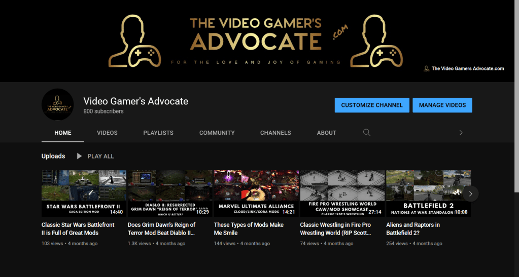 Last week, the TVGA YouTube Channel finally reached 800 subscribers. This is especially amazing when considering I have not posted a video since March. I’m thankful that the content I have on the channel continues to attract new viewers and subscribers. I do plan to do a few videos this month. In the meantime, one of my greatest delights on YouTube is checking out the videos of the content creators that I’m subscribed to. I learn so much from other people’s channels that I would have never discovered on my own. It’s a lot of fun commenting and interacting with different people on the various gaming channels.